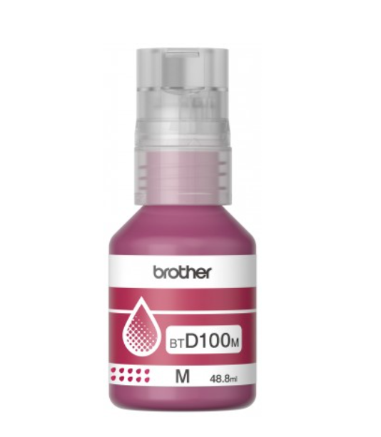 Botella de tinta Brother BTD100M magenta, rendimiento aproximado 5,000 páginas, compatible con equipos DCPT230, DCPT530DW, DCPT730DW, MFCT930DW.
