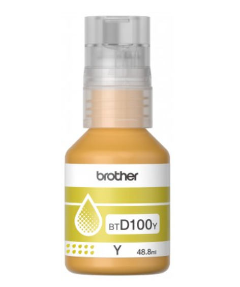 Botella de tinta Brother BTD100Y amarillo, rendimiento aproximado 5,000 páginas, compatible con equipos DCPT230, DCPT530DW, DCPT730DW, MFCT930DW.