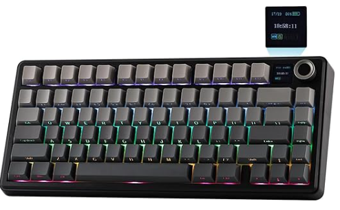 - Tamaño compacto, núcleo funcional: Con 80 teclas programables y una pantalla personalizable, el F75 Max mejora a su exitoso predecesor EPOMAKER X Aula F75 con la misma fiabilidad e increíbles funciones nuevas. Deléitese con la comodidad que ofrece el botón de volumen y disfrute de la pantalla con visualización Gif que hace que la personalización de la retroiluminación sea fácil y divertida. Con conectividad, monitor de batería e indicadores luminosos combinados en uno, el teclado F75 Max con pantalla inteligente TFT será su ayudante inseparable y potenciador de la productividad en los juegos y en la vida.