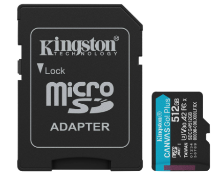 MEMORIA MICROSD KINGSTON CANVAS GO! PLUS GEN4 512GB R.200MB/S W.160MB/S CL10 UHS-I U3 V30 A2