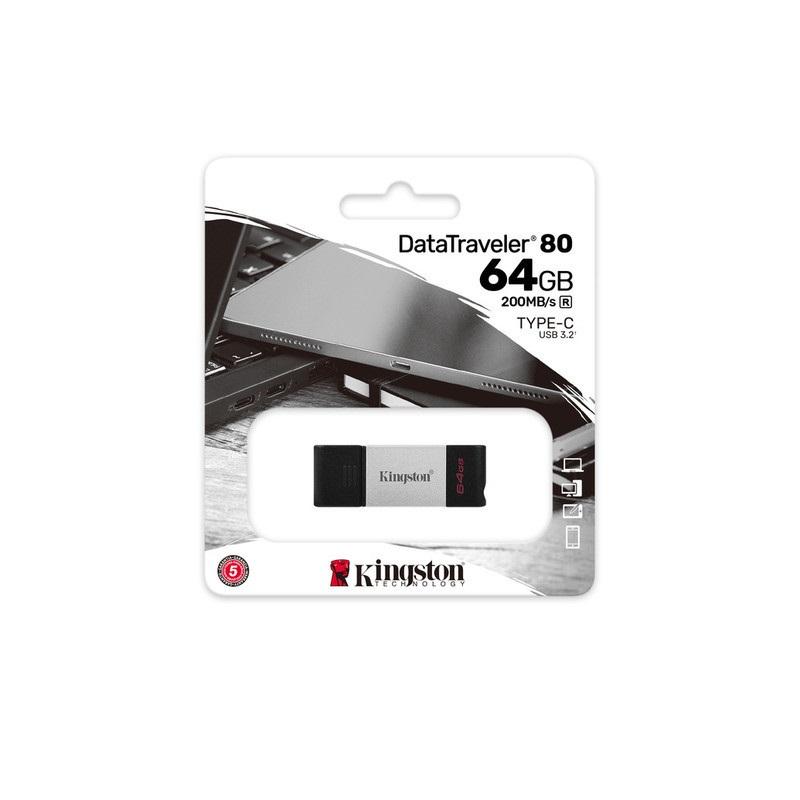 Memoria Tipo C 64GB Kingston DT80/64GB Plata/Negro