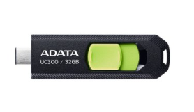 Memoria USB 3.2 Gen 1 Tipo C 32GB UC300, Conector deslizable sin tapa. Plastico, color NEGRO-VERDE ACHO-UC300-32G-RBK/GN