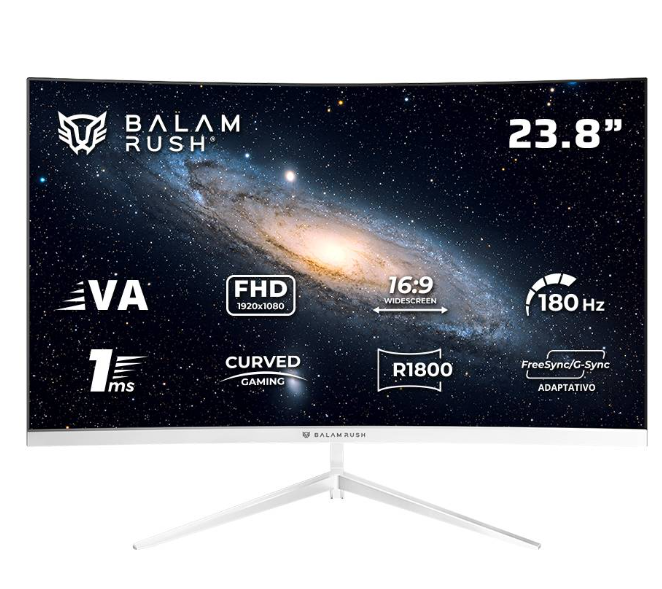 Monitor Curvo Gaming 23.8" 180hz ANDROMEDA MAG24Y Panel VA, 23.8'' Curvo, Resolución: 1920 x 1080 FHD 1800R Frecuencia: 180 Hz, Respuesta: 1 ms, Puertos: 1 x HDMI 1.4 + 1 x Display Port 1.2 1x Tipo C Display + 1 Audio 3.5, Montaje VESA. Color Blanco. BR-943048