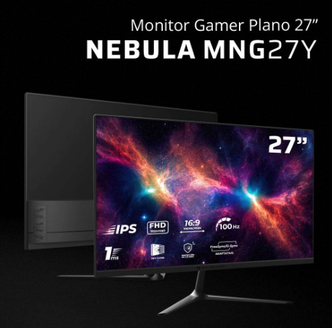 Monitor Gaming plano 27" 100hz: NEBULA MNG27Y Balam Rush FreeSync/G-Sync Adaptativo, Panel: 27'' Plano, Resolución: 1920 x 1080 (Full HD) Frecuencia: 100 Hz, Respuesta: 4 ms, Puertos: 1 x HDMI 1.4 + 1 x Display Port 1.2 + 1 x Audio 3.5, DC. Montaje VESA 100x100 mm, Ajuste (inclinación) Frontal 5° / Trasero 15°. Longitud de cable alimentación 1.5m. Material: Metal y Plástico. Color Negro. BR-943024