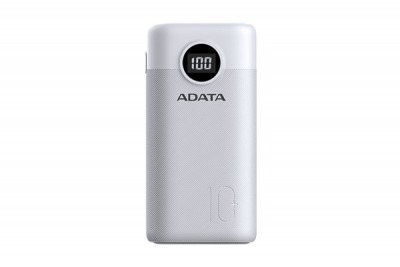 PowerBank ADATA AP10000QCD de 10,000 mAh. Dos puertos USB-A y un puerto USB-C, cargar tres dispositivos simultáneamente, pantalla digital con indicador de carga, Color Blanco AP10000QCD-DGT-CWH