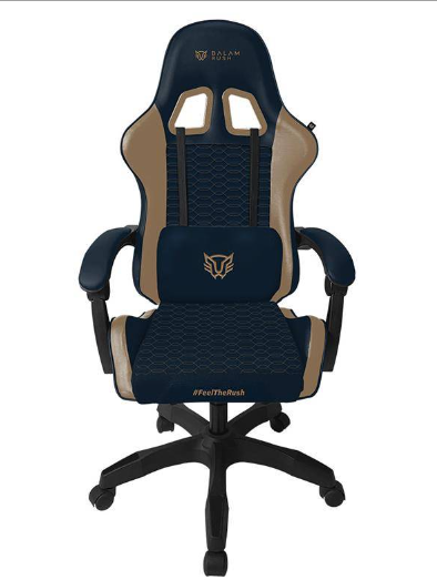 Silla Power Rush V2 Balam Rush Reposabrazos Fijos, Pistón de gas clase 3, Inclinación 90° a 135°, Soporta hasta 120 kg, Materiales: Metal, espuma, tela, nylon, poliuretano, Garantia 1 año. Color Azul/Camel. BR-944496