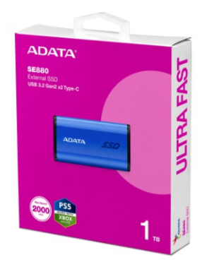 SSD Externo ADATA SE880 1TB. Interfaz USB 3.2 Gen 2 X2, Puerto USB-C. Color AZUL. Numero de parte AELI-SE880-1TCBU