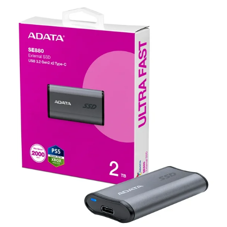 SSD Externo ADATA SE880 2TB. Interfaz USB 3.2 Gen 2 X2, Puerto USB-C. Color GRIS
