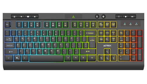 Teclado Alámbrico Led AUREAN PRO TA477G Acteck Advanced Series Iluminación LED, 12 teclas Multifuncion, Tecaldo Membrana, 8 Millones de Clicks, Compatible con Windows y Linux, Conexión USB. Color Negro, AC-936743