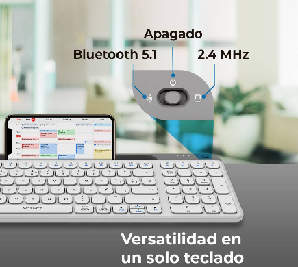Teclado Inalámbrico Multidispositivos AC-940115 INSPIRE TREK TI747 Acteck Elite Series Bluetooth 5.1, Dongle 2.4 MHz