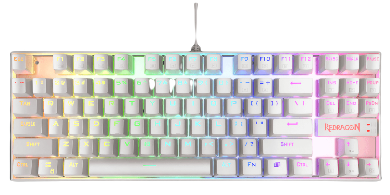 Teclado Mecánico Redragon Kumara White RGB Red Switch. Modelo K552W-RGB-1R-SP. Un best-seller aclamado, y con razón. El Kumara es un teclado mecánico TKL (sin pad numérico); compacto, pero ampliamente funcional y fuerte, gracias a que su estructura está reforzada con acero. Es virtualmente irrompible y tiene una durabilidad extraordinaria. Teclado mecánico con RGB, cable de goma reforzado, switches Redragon Red, teclas multimedia a través de tecla FN, extractor de keycaps, extractor de Switches, 4 switches de repuesto, manual del producto y sticker de la marca. Tamaño TKL(sin pad numérico). Garantía 1 año. Color Blanco. Español Latinoamérica (ISO).